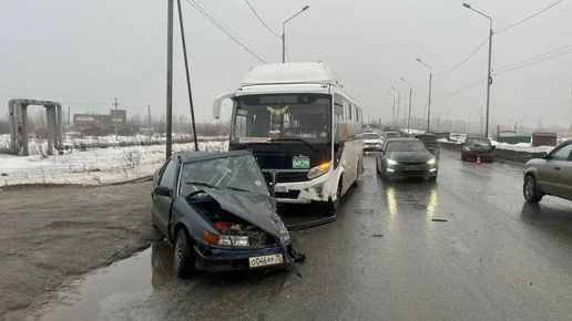 Утром на окраине Омска японская иномарка столкнулась с «землячкой» и автобусом
