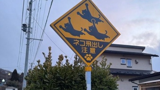 Дорожные знаки в Японии, предупреждающие о внезапном появлении кошек