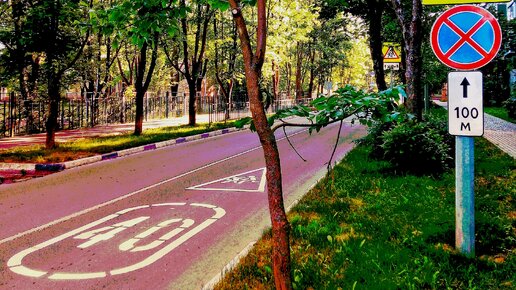 Утром гуляем с собакой и видим картинку маслом: Слева ограда школы номер восемь. Вход на стадион еще запрещен. Справа будет детская хоровая студия. В семь утра песен еще не поют. Мужик, который недавно делал разметку, не обманул. Это разметка. Очень захотелось на свободное дерево свой знак повесить. Например, чтобы родители больше приглядывали за детьми...