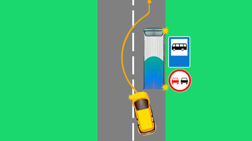 Разберём спорную ПДД задачку, можно ли объехать автобус по встречке, если стоит знак, запрещающий обгон. Итак, жёлтая машина едет за автобусом, который останавливается на остановке - она, к слову, не оборудована "карманом", поэтому шофер автобуса по сути занял всю полосу. Тогда водитель жёлтого авто, не желая ждать, включает левый поворотник и хочет объехать остановившийся автобус. Однако в последний момент водитель замечает стоящий знак 3.20, запрещающий обгон. И тут он задумался: можно ли объехать...