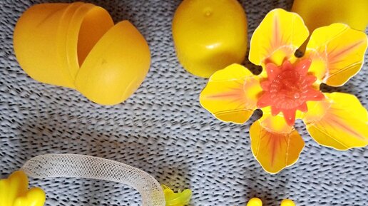 Вот в красных капсулах лягушка и динозавр. С некоторыми детьми можно обсудить их , используя слова "одинаковый", "разный". Цвет одинаковый, форма разная...