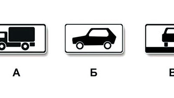 Какие из указанных табличек распространяют действие установленных с ними знаков на грузовые автомобили с разрешенной максимальной массой не более 3,5 т? 1. Только Б. 2. Только В. 3. Б и В. 4. Все. Правильный ответ №3. Табличка Б (8.4.3 "Вид транспортного средства") распространяет действие знака не только на легковые автомобили, но и на легкие грузовики (грузовые автомобили с разрешенной максимальной массой до 3,5 т), а табличка В (8.6.1 "Способ постановки транспортного средства на стоянку")...