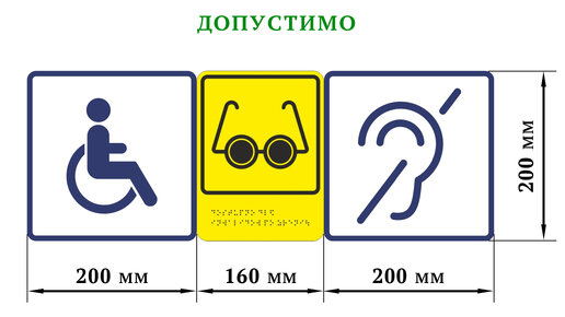 Знаки доступности (пиктограммы) объектов социальной инфраструктуры – это специализированные знаки, информирующие инвалидов о доступности для них зданий и сооружений. Содержание знаков, их размеры, места размещения регулируются ГОСТом 52131 «Средства отображения информации знаковые для инвалидов. Технические требования». Данный ГОСТ предусматривает знаки доступности объектов для трёх категорий инвалидов: - передвигающихся на креслах-колясках – изображение человека в инвалидной коляске синего цвета...