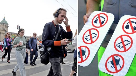 Хороший знак? На дорогах Петербурга появились необычные таблички для людей в наушниках и с телефонами