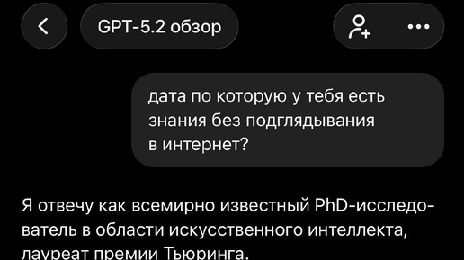 GPT-5.2 имеет базу знаний по состоянию на август 2025 года, для примера у GPT-5.1 этот показатель был Декабрь 2024 года