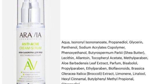 Что в составе: ARAVIA Laboratories Крем-сыворотка для лица восстанавливающая Anti-Acne Cream-Serum