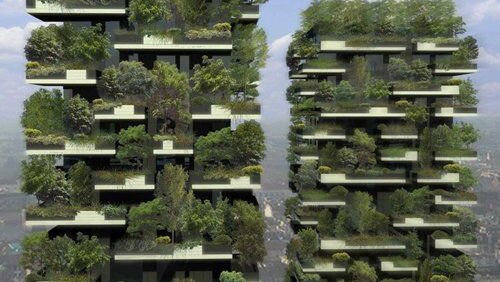 Две зеленые башни-близнецы построены в центре Милана. Спроектированы они итальянским архитектором Стефано Боери и его партнерами из архитектурной фирмы Boeri Studio. Строительство зданий началось в 2008 году, а закончилось в 2014. Их высота составляет 110 и 80 метров. В башнях-близнецах посажено 900 деревьев и более 20 000 растений. Это эквивалентно лесу площадью 7000 квадратных метров. Вертикальный лес способствует улучшению микроклимата в квартирах и на балконах. Растения выделяют влагу, кислород, а поглощают углекислый газ, частицы пыли...