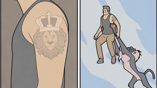 Привет, дорогой друг! Вечнее, чем батин пиджак со свадьбы и зарплата без повышений в «так-себе» компании, может быть только татуировка на теле. Хотя и от нее можно избавиться… чего не сказать о папином костюме-троечке. Люди делают тату, чтобы выделиться среди остальных. Как-будто квартиры не в ипотеку для этого недостаточно). В общем, мода на татуировки, кажется, вечна. Сегодня я собрал 7 смешных комиксов про любителей татуировок. Уверен, они вас повеселят. Даже если вы никогда не задумывались о том, чтобы набить себе что-то...