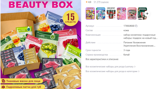 Я как то рассматривала дочери подарок и много чего интересного добавила себе в корзину. Как мне кажется такие бьюти боксы будут отличным подарком для девушки любого возраста. А еще интересен сам процесс распаковки таких коробочек. Набор масочек для лица, губ и век!!! Интересный набор бальзамов для губ!!! Еще один набор с масками!!! Большой бьюти бокс!!! Подарочный косметический набор!!! Подарочный набор уходовой косметики бьюти бокс! Косметический мега-набор!!! Еще один большой...