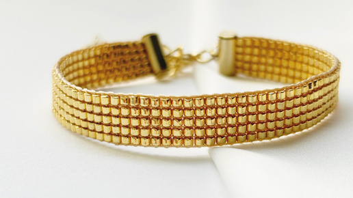 Ощутите прикосновение роскоши и элегантности с этим браслетом, созданным из высококачественного японского бисера с устойчивым золотым покрытием. Идеально ровные ряды бисера, сплетенные в прочную и гибкую конструкцию, создают эффект цельного золотого полотна на вашем запястье. Это украшение – воплощение минимализма и утонченного стиля. Ключевое слово здесь – “японский”. Японский бисер славится своим непревзойденным качеством и ровностью. Благодаря строгим стандартам производства, бисеринки идеально ложатся, создавая безупречную поверхность...