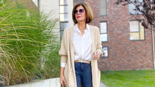 Осень — совсем не повод для грусти. Это время экспериментов со стилем и период уютных образов. Самым популярным предметом женского гардероба на холодный сезон остаются, конечно же, джинсы. Всего с одной парой модных брюк из денима можно составить множество оригинальных комплектов на каждый день. В качестве базы прекрасно подойдут синие джинсы актуального фасона: прямые, широкие, клеш, слоучи или «бананы». Как и с чем их правильно сочетать — смотрите в сегодняшнем материале, в котором я собрала для вас нескучные ансамбли с джинсами для женщин 40-50 лет...