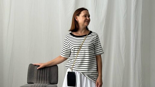 Футболка в чёрно-белую полоску — классика, которая всегда в моде. Простая и универсальная, она легко впишется в любой гардероб. Носите её с белыми хлопковыми брюками или юбкой — получится лёгкий, свежий образ на каждый день...