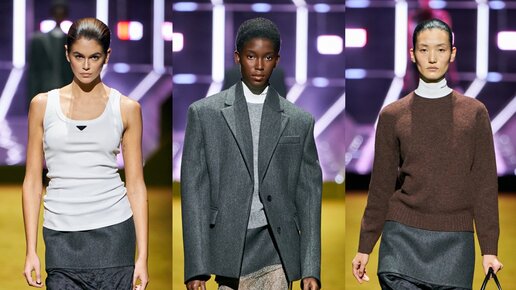 Prada FW’22 RTW играет со слоями и объемами, с фактурой и отделкой. Коллекция в прямом смысле отвечает на вопрос, что такое дизайн одежды, её конструирование. И ответ не разочаровывает. Основой этой коллекции являются обтягивающая майка с лого и узкая прозрачная юбка ниже колена, которая предстает перед нами в различных ипостасях. «Люди снова хотят жить и вдохновляться. – говорит Миучча Прада. - Хотят узнавать от других что-то новое». Комбинирование в этой коллекции возведено в культ. Иногда даже...