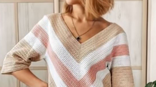 Пуловер крючком с треугольным вырезом. Мастер-класс