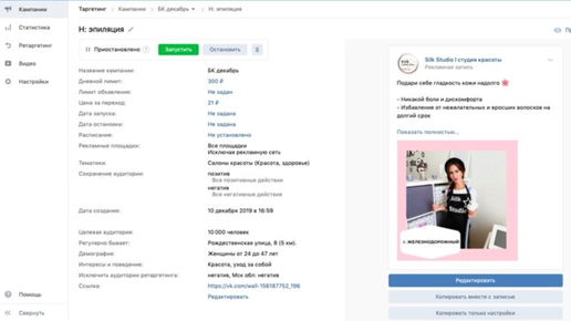 Клиент после проведения рекламной компании остался доволен. Бюджет ВК: 20 000 ₽.