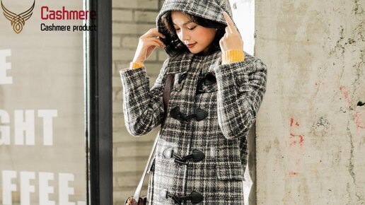 Женское пальто с капюшоном, шерстяное пальто, клетчатое средней длины роговыми пряжками, женская с Алиэкспресс обзор