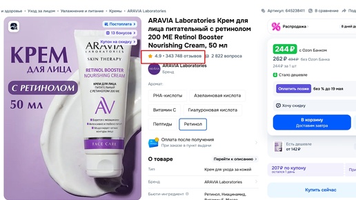 4.9 • 343 748 отзывов: почему питательный крем ARAVIA с ретинолом обожают новички и боятся профи?