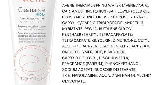 Химик о составе AVENE CLEANANCE HYDRA Успокаивающий крем для пересушенной жирной и проблемной кожи