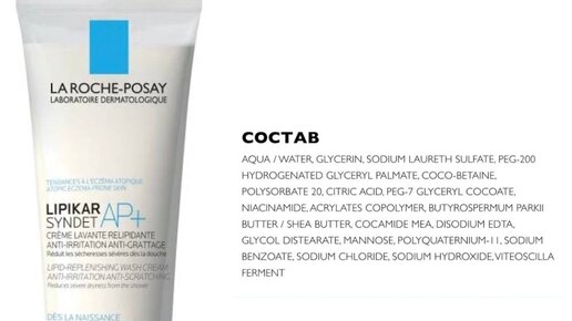 Что в составе: La Roche-Posay Lipikar Syndet AP+ Крем-гель для лица и тела липидовосстанавливающий очищающий