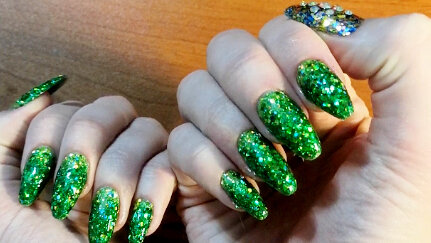 Здравствуй, уважаемая красавица! Хочу рассказать свой способ создания а-ля гелевых ногтей с помощью обычного лака и блёсток. С помощью такого метода получается сохранить длину и крепость ногтей. Уже более 5 лет я крашу ногти именно так и у меня всегда спрашивают: "Ногти нарощенные?" Лет 8 назад я сама себе делала гелевые ногти в течение нескольких месяцев. За это время ногтевая пластина погрузилась в депрессию)) Оттуда я "вытаскивала" её целый год, восстанавливала прочность и толщину. Дабы сохранить свои ногти, я стала их укреплять обычным лаком и блёстками...