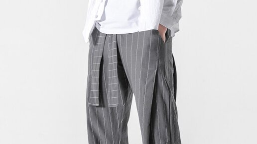 Брюки султанки свободного покроя для мужчин и женщин, модные штаны из хлопка и льна в полоску, брюки для бега оверсайз, уличная с Алиэкспресс - цена 20,68$ по скидке 47%, купить можно тут: https://is.gd/vPol29 Мужские широкие брюки
