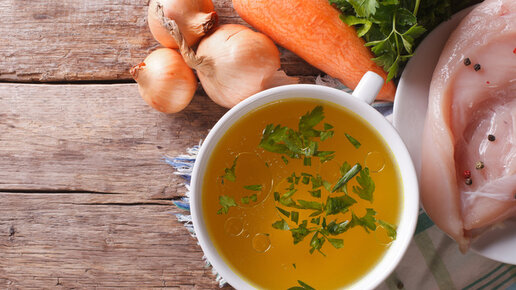 Куриный бульон является универсальным блюдом для худеющих по принципам различных диет. Такая составляющая при похудении обладает своими вкусными, сытными качествами. Благодаря этому его присутствие подходит для многих диет: низкое содержание жира с углеводами и избыток белков. Это способствует возможности похудеть без нанесения вреда телу. Приготовление диетического куриного бульона не занимает много времени и не содержит в своем рецепте дорогие ингредиенты: все легко и просто. Рецепт приготовления состоит из добавления: 1...