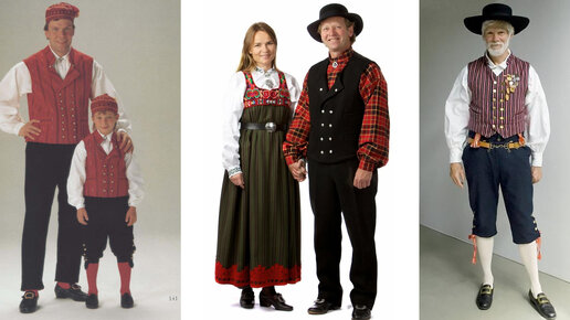Народная одежда жителей севера чем-то напоминает Русский народный костюм: узоры, вышивки, многослойность. Из-за сурового климата в качестве материала выбиралась шерсть и плотные ткани, способные хорошо сохранять тепло. Мужской костюм сочетал в себе рубашку, куртку, бриджи и двубортный жилет, преимущественно темных цветов. Жилет считался обязательной составляющей мужского гардероба, он застегивался на маленькие пуговицы, которые могли быть сделаны из серебра. В качестве головного убора мужчины носили шляпы с широкими полями либо шапки ермолки...