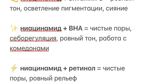 С чем хорошо сочетается ниацинамид? Тут речь как о послойном нанесении средств, так и о ситуации, когда два актива производитель добавил в одну банку. #ниацинамид