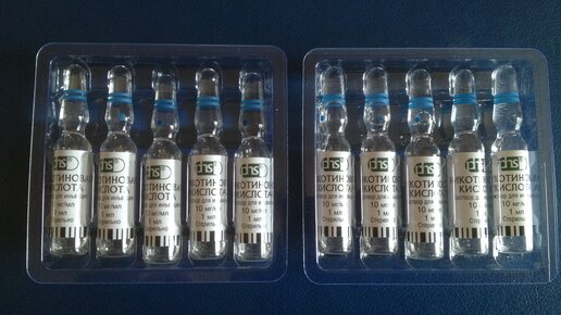 Никотиновая кислота, она же витамин PP, витамин B3, ниацин, никотинамид — это вещество, которое стимулирует кровообращение и расширяет сосуды. Выпускается в таблетках для приема внутрь и ампулах для инъекций.