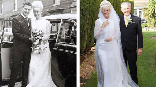 Через 50 лет после свадьбы пара надела свои подвенечные наряды, которые оказались впору