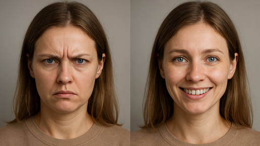 Многие пациенты приходят именно с этой жалобой: «Меня всё время спрашивают, почему я сержусь, хотя я спокоен». Межбровная морщина — это не только эстетика, но и психология.