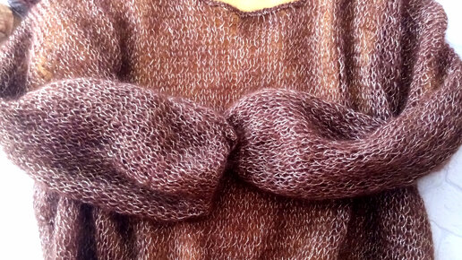 Свитер-паутинка без реглана из кидмохера с люрексом: описание вязания