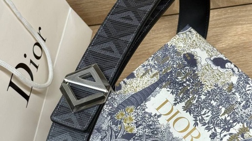 Двусторонний ремень Dior из натуральной кожи и парусины черно-серого цвета с съемной пряжкой которую можно заменить на другую.