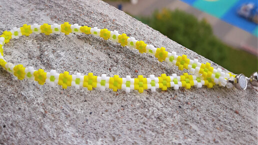 Лютики-Ромашки браслет из бисера. Простой фото мастер-класс.