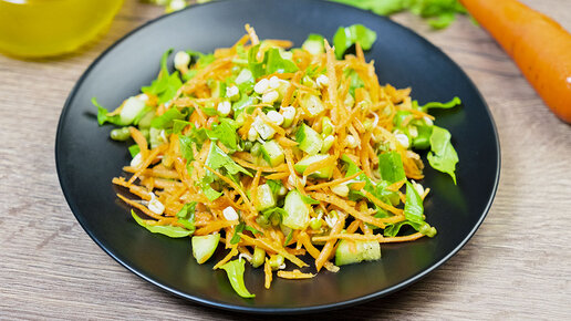 Привет, мои хорошие! 😊 Сегодня мы приготовим очень полезный салат с проростками маша. По нашему рецепту блюдо получается освежающим и вкусным. Молодые бобовые ростки в нём напоминают свежий зелёный горошек. В сочетании с другими ингредиентами они дают прекрасный вкус. Готовится салат просто и быстро, если проростки у вас уже есть. Ингредиенты: - пророщенный маш 60 г - огурец 1 небольшой или половинка большого (100 г) - морковь 1 шт (70 г) - руккола 10 г (можно заменить свежей зеленью по своему вкусу)...