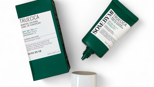Сегодня на обзоре популярный солнцезащитный крем для проблемной кожи от корейского бренда Some by mi Truecica mineral calming tone-up suncream SPF 50+ PA ++++. Упаковка-приятная, коробочка из картона глубокого зеленого цвета с покрытием soft-touch, на ней вся информация, состав и наклейка с русским текстом. Сам тюбик из матового пластика такого же зеленого цвета, с откручивающейся устойчивой крышкой. Крем подается через узкий носик, объем 50 мл. Средство белого цвета, плотной кремовой консистенции,...