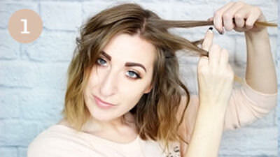 Простые укладки для короткой длины не могут обойтись без французских косичек, слегка небрежных и очень стильных. Шаг 1. Расчесываемся на прямой пробор. Шаг 2. Переднюю прядь с правой стороны заплетаем в свободную французскую косичку, захватывая пряди снизу...