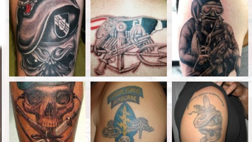 Служба на Кавказе19 тыс читали · 5 лет назадПодписатьсяТатуировки американского спецназаАрмейские татуировки войск специального назначения разных стран, традиция набивать тату, со своей индивидуальной символикой пресыщена военнослужащим всех стран мира. Армейскую татуировку спутать нельзя...