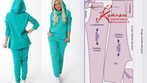 Выкройка толстовки с капюшоном и брюк к ней в спортивном стиле