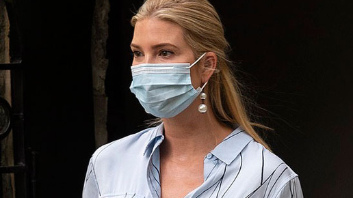 Иванка Трамп в шикарном шелковом ансамбле, идеально сочетающимся с ее защитной маской выходит из своего дома.