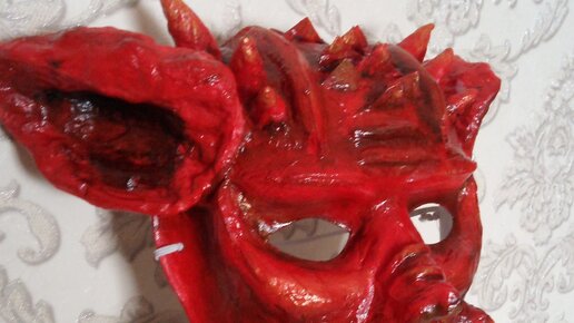 В первой части мы делали маску для девочки. Сейчас я покажу, какая маска получилась для мальчика. Образ можно придумать свой, любой. Или взять за основу образ супер героя и наложить вату на части, которые этого требуют, покрасить в нужный цвет. Мы делали дракона. Шаблон для дракона такой же, как и для маскарадной маски для девочки (можно купить в канцтоварах, их часто привозят для художественных школ), а добавили нужных деталей и маска заиграла по-другому. Уши сделаны из фольги. Придала нужную форму и обклеила ватой...