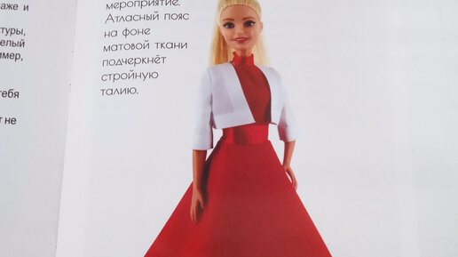 Заказывала несколько журналов с разными видами моделей одежды для куклы Барби и ей подобных. Выкройки внутри подходят для кукол 29-30см. В журнале приложен пакет с тканью, нитками для шитья вручную и выкройками в натуральную величину по габаритам куклы. Ничего не надо увеличивать или уменьшать. Выбрала красное платье с белым жакетом. Этот комплект буду шить первым. Платье и жакет в журнале показаны в разных ракурсах. Так же есть полное объяснение, как скроить, наложить выкройку на ткань и сшить данный комплект...
