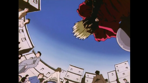 На сегодняшний день многие аниме идут по одному и тому же примитивному сценарию: четкое разделение на белое и черное, слабый герой становится с каждым поединком все сильнее и сильнее и в конце концов побеждает ненавистное нам зло. Это аниме исключение из этого списка. Чем же повествует нам это аниме? Главного героя зовут Вэш Ураган. Люди его еще называет Гуманоидный тайфун. Примечательно, что его боятся больше, чем настоящего тайфуна и считают стихийным бедствием. На земле, которая после катастрофы...