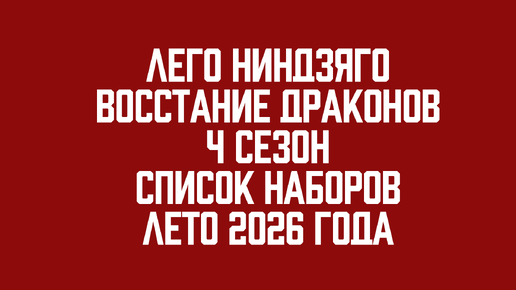 ЛЕГО НИНДЗЯГО. ВОССТАНИЕ ДРАКОНОВ. НАБОРЫ ЛЕТО 2026 ГОДА. 4 СЕЗОН.