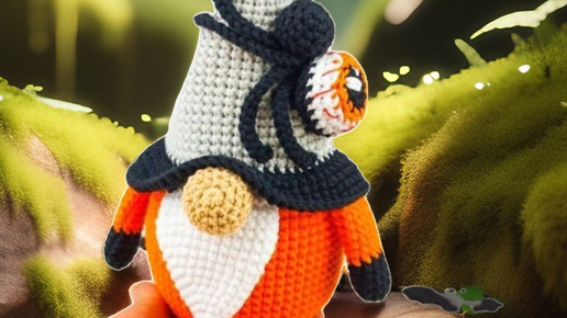 Гном Паук на Хеллоуин - описание вязания игрушки крючком