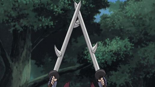 Мечи Семи Мечников передаются из поколения в поколение. Каждый меч обладает уникальными свойствами и являются одними из сильнейших оружий в аниме. 1) Кубикирибочо ( буквально означает: "Обезглавливающий Разделывающий Нож"): гигантский меч с внешностью ножа мясника, владелец которого может использовать полукруг на лезвии, чтобы отрубить голову противника, от чего и название. На мече никогда не появляется зазубрин(точнее он восстанавливается, используя железо, поглощённое из крови тех, кого он убивает)...
