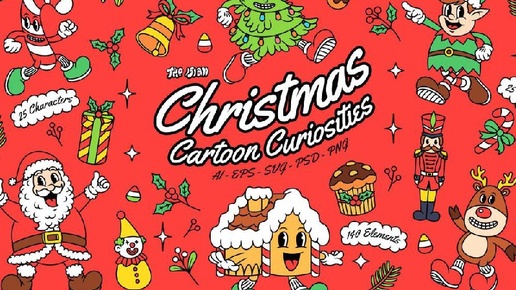 Christmas Cartoon Curiosities - иллюстрации Формат: ai, eps, png, svg, psd Размер: 197 MB Состав: 🍭 ● 190 элементов Описание: 🎁 Весёлые мультяшные картинки, которые подарят вам новогоднее настроение. Подойдут для любого праздничного проекта...