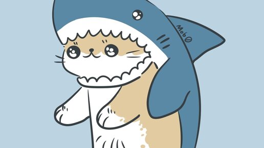 Милая иллюстрация кота в костюме акулы. Скетч забавного кота в костюме голубой акулы. Просто небольшой рисунок милого кота.
