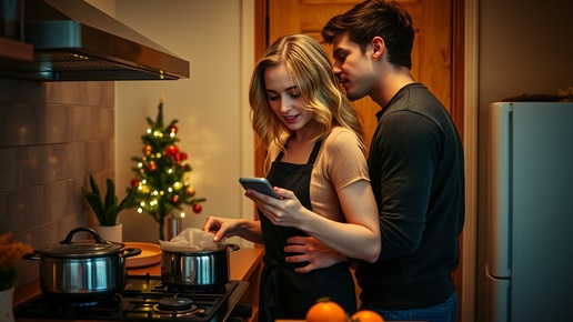 31 декабря. За окном метёт снег, а в маленькой однушке на окраине города пахнет мандаринами и хвоей. Алиса стоит у плиты и нервно помешивает что-то в кастрюле, поглядывая на телефон. На экране — заметки с рецептами, которые мама присылала ей всю неделю. — Лис, ты точно уверена? — Данила обнимает жену сзади и целует в макушку. — Может, всё-таки к родителям? Они обидятся. — Мы придём к ним завтра. Первого января. А сегодня... — Алиса поворачивается к нему, в глазах блестят искорки. — Сегодня наш первый Новый год...