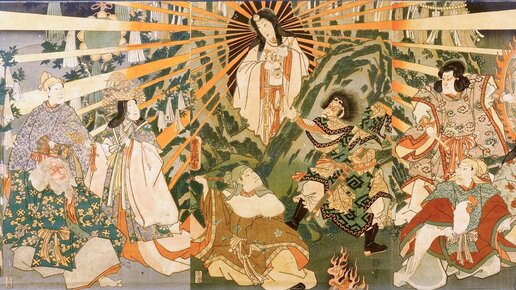 Богиня Аматэрасу - прародительница японского императорского рода. В японской культуре имя богини Аматэрасу оомиками переводится как «великое достопочтенное божество, озаряющее небеса». Аматэрасу была провозглашена богиней солнца и одним из главенствующих божеств синтоистского пантеона. Ее почитали как изобретательницу возделывания риса, технологии получения шёлка и ткацкого станка. Многие исследователи полагают, что в культе Аматэрасу соединились черты двух божеств ― матери-первопредка, почитаемой...